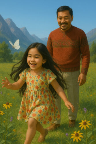 Кийинки учурда Акмөөр атасынан көпөлөктөр жөнүндө жомок айтып берүүсүн суранчу болду. Канаттары ак, сары көпөлөктөр анын түшүнө да кирчү. Бара-бара жол күзөтүп, эшикте жүргөн Акмөөрду так көтөрүп,”менин көпөлөгүм, менин көпөлөгүм!”деп төбөсүнө тегерентип-тегерентип алар эле атасы.
