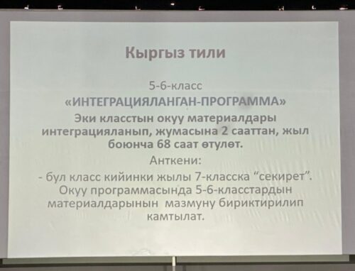 — Ар бир предмет боюнча стандарттарда өзгөрүүлөр бар экен. 5-6-класстарда сабактар интеграцияланып, 7-класста жаңы окуу программа менен окушат. 2024-2025-окуу жылында даярдоодон өткөн балдар 2-класска секирик кылып, 1-класс интеграциялынып окутулат. Форум абдан түшүнүктүү жана кызыктуу болуп, жаңы маалыматтарды ала алдык.