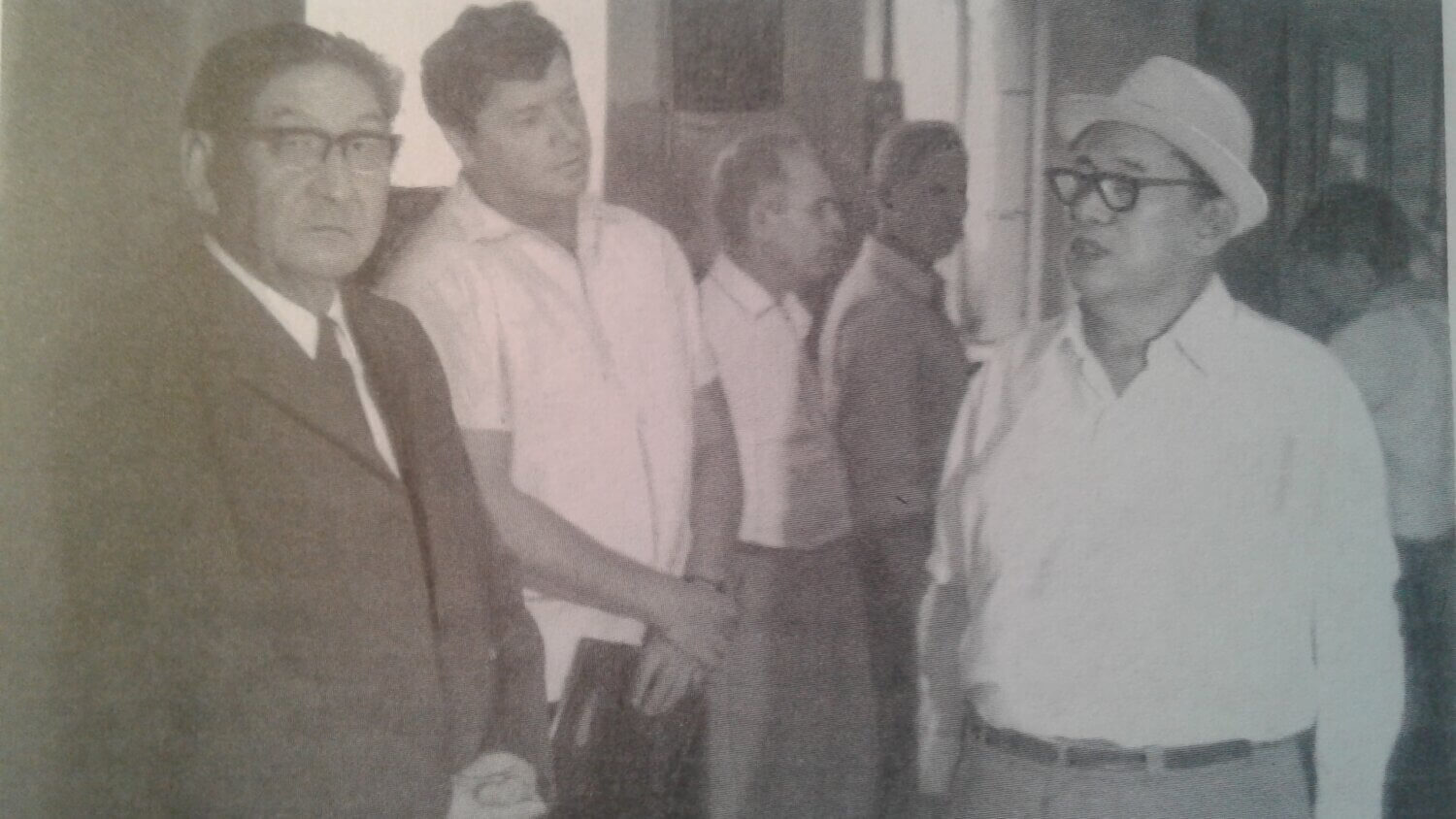 Кулатов Т.К –Кырг.ССринин Жогорку Советинин Президиумунун төрагасы жана Ж.Т. Тойгомбаев Фрунзе ш. 1975-ж. Республикалык кесипчилик техникалык билим берүү системасынын конференциясы.