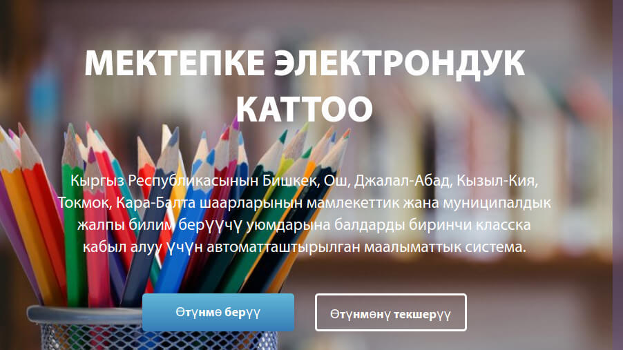 2021-2022-окуу жылына карата 1-класстарга балдарды кабыл алуу «Мектепке электрондук каттоо» автоматташтырылган маалымат тутуму аркылуу 15-февралдан бери жүрүп жатат. Айрым мектептер каттоо башталаары менен толуп калган болсо, кээ биринде дагы деле бош орундар бар. 6-апрелге карата 14853 билдирме түшүп, 1-класска 10866 бала кабыл алынды.