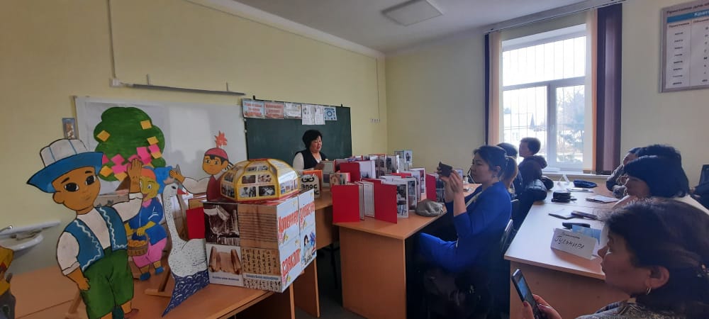 Өткөн жылдын март айында дагы облустук деңгээлде өткөн китепканачылардын кесиптик чеберчилигин жогорулатуу курсунда дагы китепкананын иш кагаздары боюнча тажрыйбасы менен бөлүшүп, мастер класс өткөн. Китепкана башчылары мектептин китепканасы менен таанышып, андан соң 3-4-класстардын жомоктор дүйнөсүнө саякат аттуу иш-чарасына катышкан. Анда жети жомок сахналаштырылып коюлган.