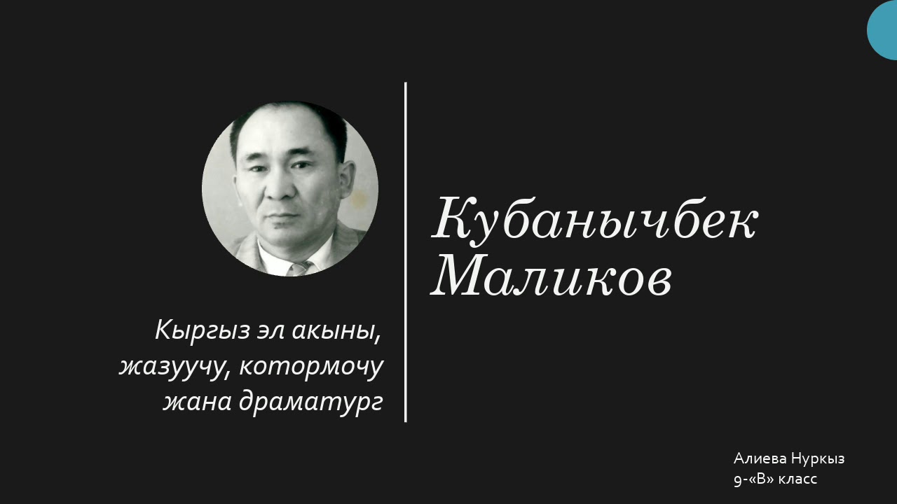 Атактуу акын, прозачы, драматург, публицист Кубанычбек Маликов бизге берегидей санат-насыят саптарды мураска калтырыптыр: