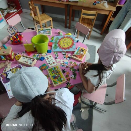 Китепкананын кире беришинде жол коопсуздугунун эрежелерин сактоо боюнча МАИнин кызматкерлери бөбөктөргө сабак өтүп жатканы кубандырбай койгон жок. Дагы бир топ балдарга ардагер эжеке Зина Боотаева (көп жыл китепкананын директору болуп иштеп келген) улуттук оюндардын тарыхын, маанисин айтып берип, ойноо ыкмасын көрсөтүп жатканына күбө болдук. Китепкананын базасында окуучуларга жөн эле окуганга китеп берип койбостон, жайкы лагерь уюштуруп коюшканы абдан жакты.