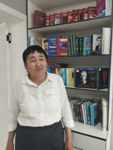 — Алыкул Осмоновдун чыгармаларын окуучулар көп окушат. Алыкул Осмонов биздин Пограничник колхозуна келип, ден соолугун чыңдап кеткенинде Ат-Башынын чымчыгы, абасы, Коргон-Таш, Рахмандын жайыты деген көптөгөн ырларды жараткан, — дейт Дамира Мукеева. — Ат-Башы районунун 95 жылдыгына карата “Ат-Башым – алтын бешигим” деген китеп көргөзмөсүн уюштурганы турабыз. Анда райондун тарыхын, адабиятын, экономикасын, райондон чыккан акын-жазуучулардын китептерин топтогонго аракет жасадык. Алсак, белгилүү акын-жазуучулар Жедигер Саалаев, Шайлообек Дүйшеев, Ысмайыл Кадыров, Динара Касмалиева-Мамбетакунова, профессор Эсенбек Мамбетакунов ж.б.у.с. китептерин чогултуп, бир жерге койдук. Китеп фондусун байытканга атбашылык байкелерибиз китептерин бергенге аракет жасап жатышат.