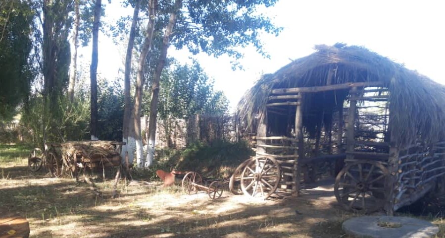 Мектептин эски имаратынын ордуна бак-шактар тигилип, алма-өрүктүн көчөттөрү отургузулган экен. Бул өзгөчө деле жаӊылык эмес. Бирок бактын ичине, бир эсе алты канат боз үйдү, бир туруп эски кашааны элестеткен, ичине жыгачтан жасалган түркүн формадагы отургучтар, кечээ эле колдонулуп, бүгүн эскирген буюмдардан ылайыкташтырылып жасалган окуу куралдары топтолгон бул жай этнобакча экен. Ачык асман астында, жайы-кышы тынбай аккан кара суунун боюна жасалгаланган этнобакча сабак өтүүгө да, жөн эле кеӊеш курууга, ар кандай дискуссияларды, интеллектуалдык оюндарды уюштурууга жагымдуу шарт түзгөн өзгөчө жай экен. Аурасы мыкты.