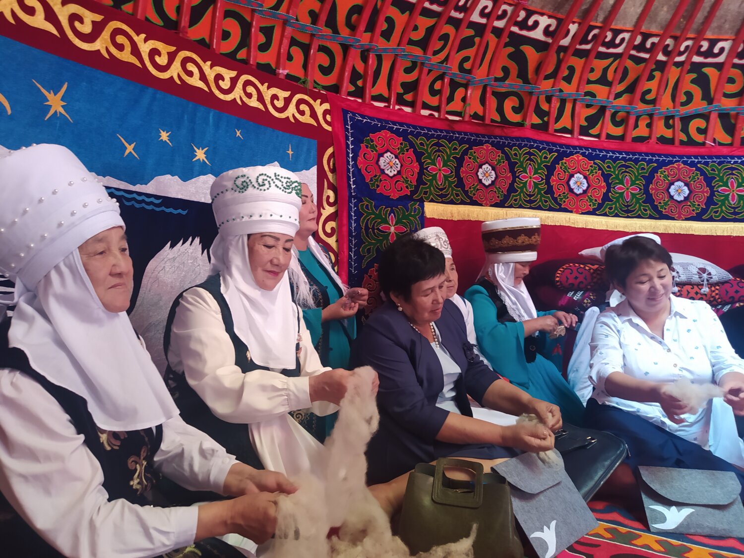 Чынын айтсак, биз улуттук кийимчен балдар-кыздарды, алардан калбай улуттук өңүттө кийинген ак калпакчан агайларды, ак элечекчен, ак жоолукчан эжейлерди көрүп, кыргыз болуп төрөлгөнүбүзгө төбөбүз көккө жете кубанып жаттык. Мектептин короосу өзүнчө бир Манас атанын доорундагы кыргыз айылын элестетти. Көркөмү көз тайгылткан боз үйдүн алдында ак элечекчен апалар кырка тизилип турат. Баары ушул мектепте иштеген же бир убакта иштеп кеткен ардагерлер экенин төшүндө жаркыраган төш белгилерден билдик. Ичкериде кыргыз көркөм дүйнөсү байырлаптыр. Ак элечекчен апалар жүн тытып, ийик ийрип, энелер мурасын улантып жатышты. Ошол эле жерде баланы бешикке бөлөө каадасы да көрсөтүлдү. Сыртта Умай эне арча түтөтүп, элибизге ак батасын айтты. Ак батанын сөзүн чыгармачыл мугалим Фаризат Тагаева жазса, Умай эненин ролун дене тарбия мугалими, агартуу ардагери Орунбү Чукунова зор чеберчилик менен аткарды. Анан коноктор менен биргеликте ачык асман алдындагы оюн борборлоруна саякатка чыктык.
