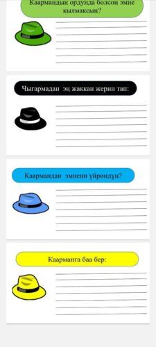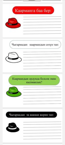 4Е. Бышыктоо. “Алты шляпа” оюнун ойноо.