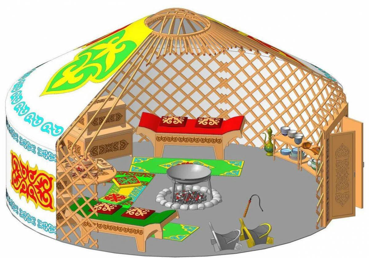 2-окуучу: Казан. Тамак-аш бышыруу үчүн чоюндан (кийин алюминийден да) жарым шар түрүндө кемегеге, тулгага, очокко, асууга ыңгайлуу жасалган чуңкур идиш. Казан бир катар элдерде алгач колодон, жезден, кийин темирден, чоюндан колго жасалган. Казанды орто Азия элдери көп пайдаланышкан. Көлөмүнө жараша чоң казан (12 карыш), кой казан (8 карыш), төрт кулактуу жана эки кулактуу кичине казан жасалган. Илгери көчмөн элинде казанды, көчкөндө салып алгыдай себет даярдап алышкан. Азыркы мезгилде казан заводдон чыгарылат.