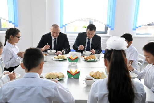 Мамлекет башчысы келечекте бул мектептен Гейдар Алиев сыяктуу инсандар чыгат деген ишенимин жана жаш мекендештер бир тууган эки элдин жана өлкөлөрдүн ортосундагы достуктун жана кызматташтыктын бекем көпүрөсү болуп каларына ишенерин билдирди.