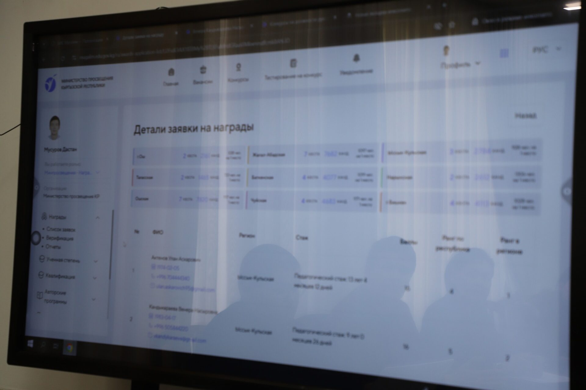 Кыргызстандын билим берүү тармагында дагы бир маанилүү жаңылык ишке ашты. Агартуу министри Догдуркүл Кендирбаева педагогикалык кызматкерлерге ведомстволук сыйлыктарды ыйгаруу процесси биринчи жолу толугу менен санарип форматка өткөрүлгөнүн билдирди.