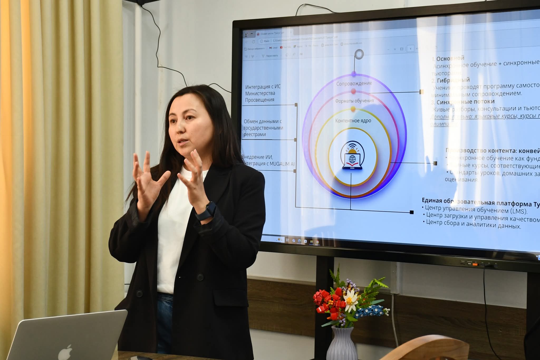 Жолугушуунун жүрүшүндө онлайн-мектептин учурдагы ишмердүүлүгү жана өнүгүү багыттары боюнча маселелер талкууланды.