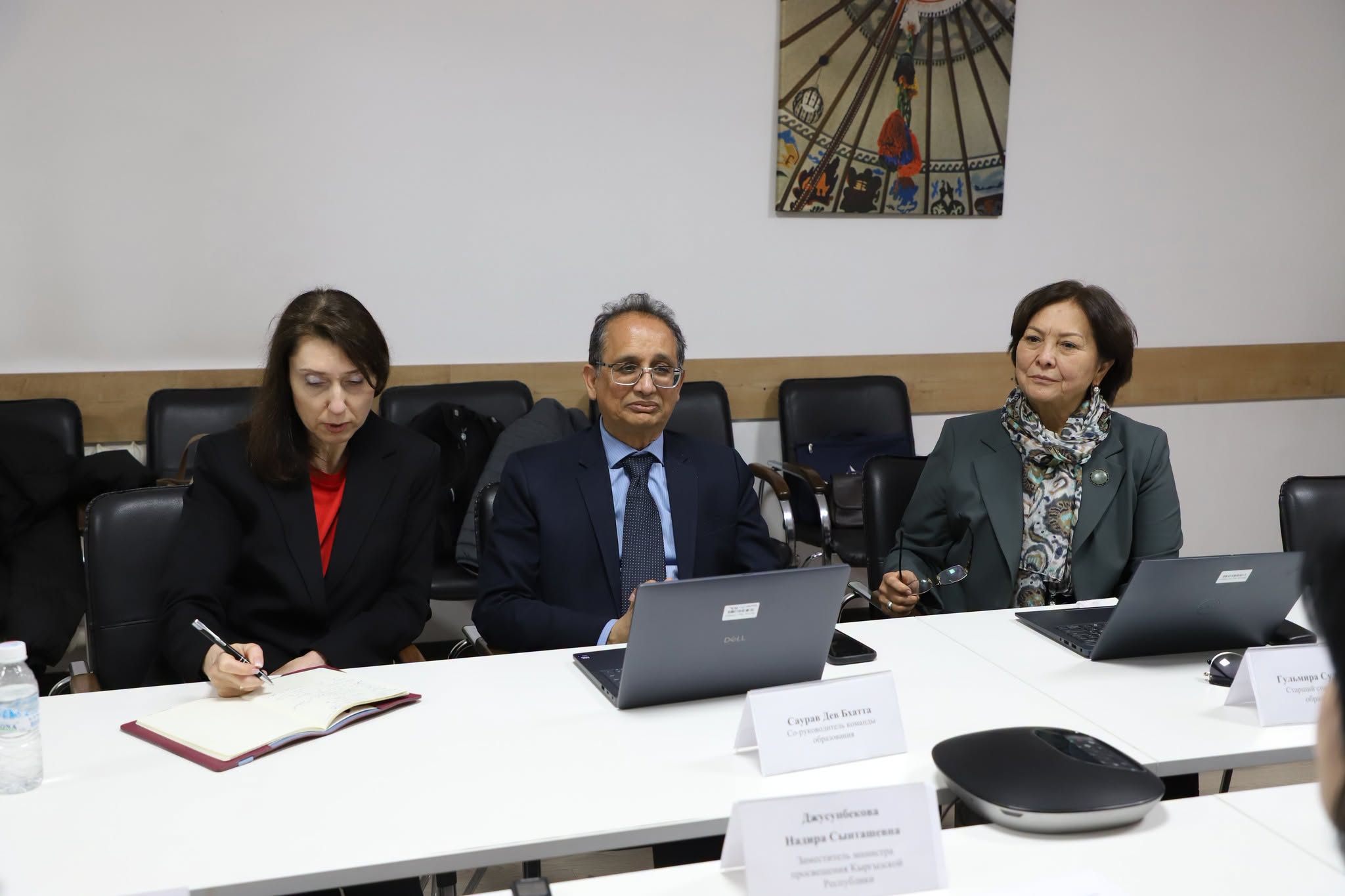 Жолугушууга агартуу министринин орун басары Надира Джусупбекова, Дүйнөлүк банктын билим берүү командасынын тең жетекчиси Саурав Дев Бхатта, билим берүү боюнча башкы адис Гүлмира Султанова, ошондой эле министрликтин тиешелүү түзүмдүк бөлүмдөрүнүн жетекчилери катышты.