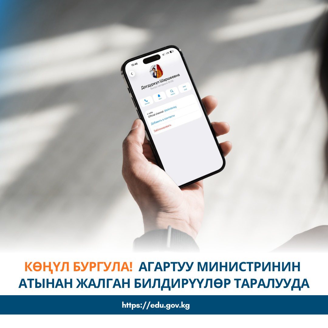 Агартуу министрлиги аталган билдирүүлөрдүн министрге эч кандай тиешеси жок экенин жана алар алдамчылык максатында атайын таратылып жатканын белгилейт.