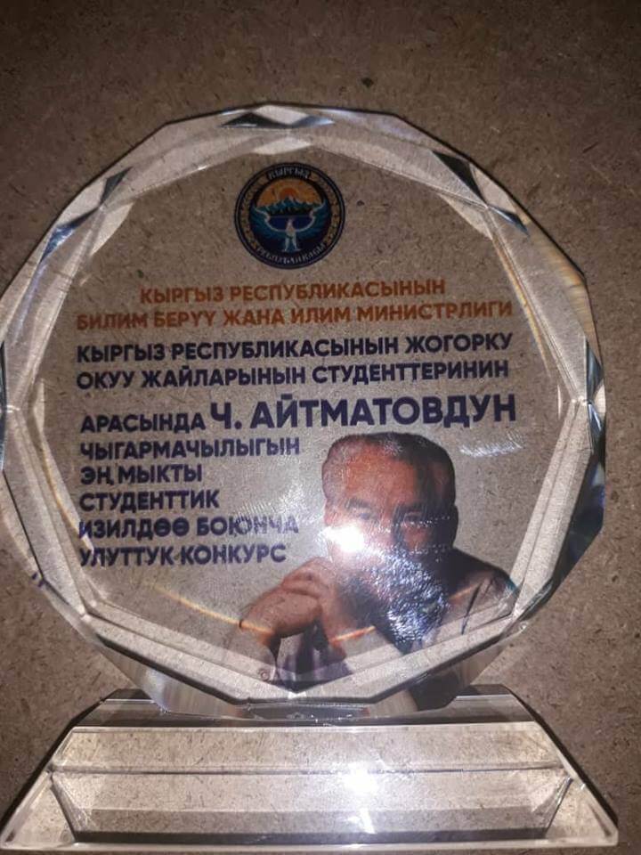 АЙТМАТОВ 90: УЛУТТУК СЫНАКТЫН БИРИНЧИ СЫЙЛЫГЫН ОШМУНУН СТУДЕНТИ АЛДЫ