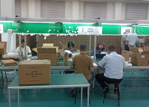 - Агартуу министрлиги менен Кыргыз мамлекеттик техникалык университетинин “Технопарк” ишканасынын ортосундагы түзүлгөн келишимдин негизинде ноутбуктар чоң көлөмдө чыгарыла баштады. Бүгүнкү күнү 10миң ноутбук чогултулуп, тапшырууга даярдалды. Келишимдин негизинде 27031 ноутбук чогултуп беришибиз керек. Калган бөлүгү июль айынын ичинде чогултулат, — деди “Технопарк” ишканасынын директору.