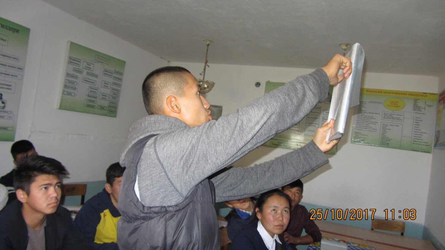 Сүрөттө: Лейлек районундагы №3 эксперименталдык гимназиянын окуучулары өткөргөн талкуу сабактан. «Бой бийик эмес, ой бийик!»