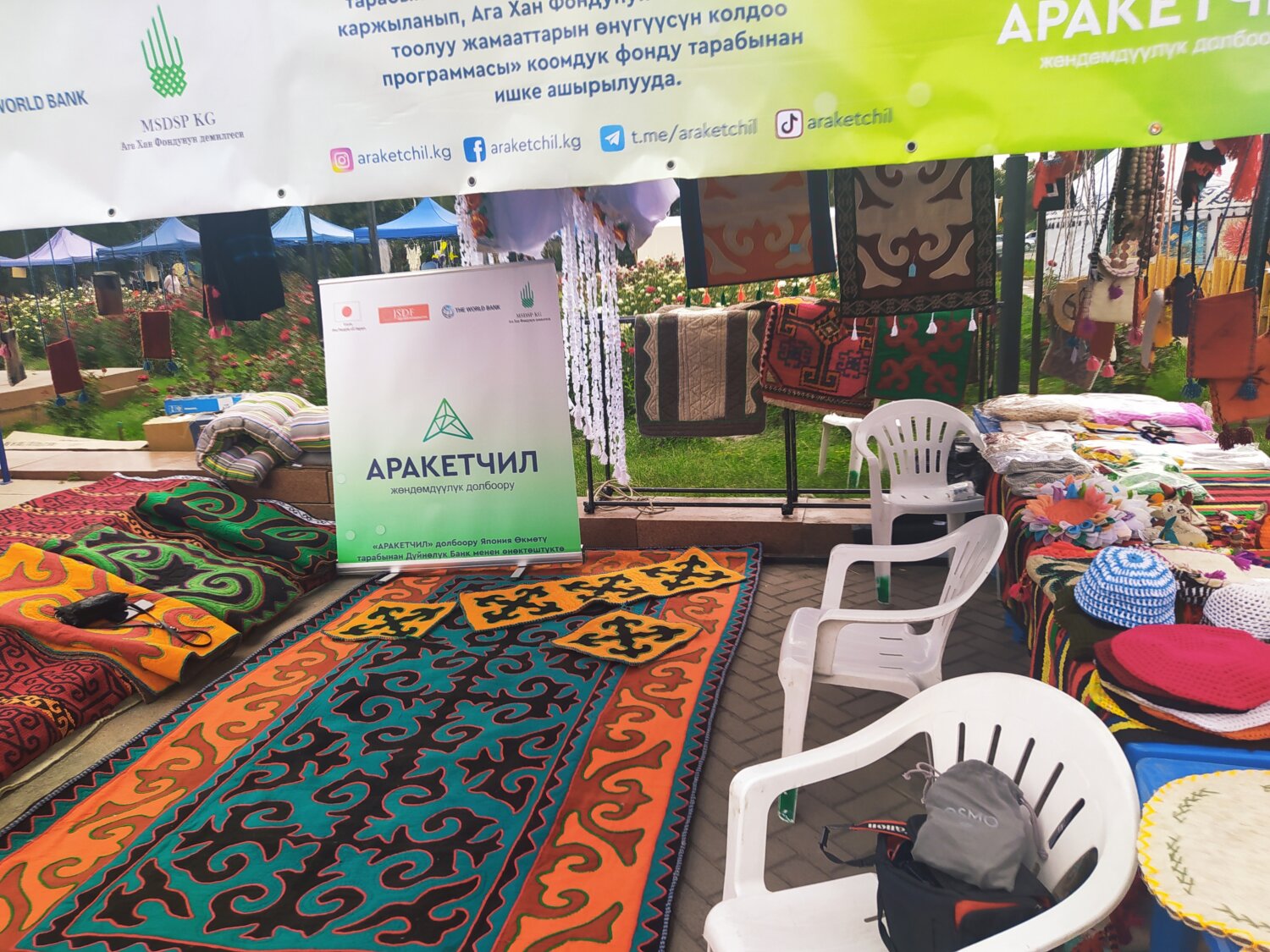 Кыргызстандын эгемендүүлүгунүн 30 жылдыгына карата уюштурулган Бишкек шаарынын так борборунда уюштурулган элдик көркөм чыгармачылык буюмдарынын көргөзмөсүндө “Аракетчил” долбоорунун Баткен жана Жалал-Абад облустарынан келген уздары өздөрүнүн колдо жасалган буюмдарын татыктуу көрсөтө алышты.