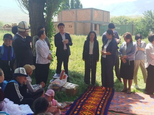 Ага Кочкор райондук мамлекеттик администрациясынын башчысы Баялы Досалиев, Нарын облустук ыйгарым укуктуу өкүлүнүн соцтармак боюнча орун басары Абдырайым уулу Шабдан катышты. Элчи Лю Цзинь Пин өз сөзүндө жайлоо өнүктүрүү борборундагы балдарга талыкпастан билим алып, келечекте мамлекетке кызмат кыла турган мыкты адистерден болуусун каалап өттү.