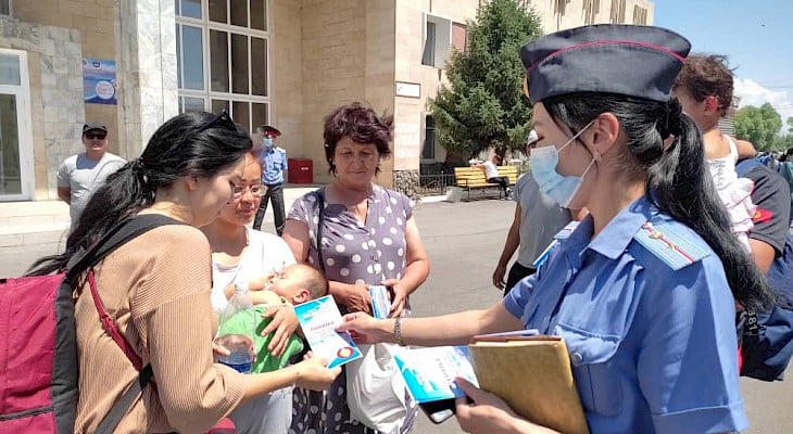 Милиция кызматкерлери Балыкчы шаарында көгүлтүр көл жээгине эс алууга келишкен балдар жана алардын ата-энелери үчүн “Коопсуз поезд” деген аталышта профилактикалык акциясын өткөрүштү.