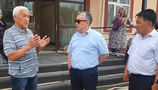 Иш сапарынын алкагында министр Ысык-Ата районунун Кең-Булуң айыл өкмөтүнө барып, курулуп жаткан мектептин абалы менен жеринен таанышты, ошондой эле жергиликтүү бийлик өкүлдөрү жана тургундар менен баарлашты.