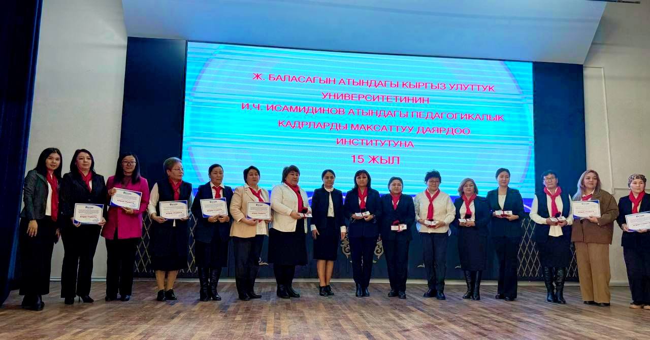 Баяндамалар аяктаган соң, институттун жамаатын 15 жылдыгы менен көрүнүктүү педагог-окумуштуулар, окуу жайлардын өкүлдөрү, иш берүүчүлөр, кызматташтар, КУУнун администрациясы, профсоюздук комитети, структуралык түзүмдөрүнүн жетекчилери жана бүтүрүүчүлөр куттуктап, И.Ч. Исамидинов атындагы стипендиялар, мэриянын, университеттин, профсоюздук комитетинин, “Мугалим” журналынын сыйлыктары тапшырылды.