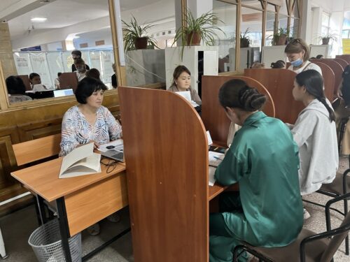 “Былтыркы жаңы окуу жылына университетке бардык багыттар боюнча 9700 абитуриент кабыл алуу пландалган. Бүгүнкү күндө 14-июлда башталган биринчи турдун жыйынтыгы менен 3466 абитуриент катталып, контрактык негизге 3201и сунушталды. 1350 абитуриент документтерин тапшырып, окууга өтүштү. Ал эми бюджеттик бөлүмдөргө 1500 абитуриент катталып, 537си сунушталып, 296сы документтерин тапшырды. Экинчи тур дагы жыйынтыкталып жатат. Контрактык орундарга 1225 абитуриент документтерин тапшырды. Гранттык орундар боюнча да кабыл алып жатабыз. Учурда бюжеттик гранттык орундага учурда 295 абитуриент кабыл алынды. Бакалавр боюнча 554 орун бөлүнгөн. Быйылкы кабыл алуунун өзгөчөлүгү педагогикалык багыттагы орундарга ваучердик система аркылуу кабыл алуу жүргүзүлүп жатат. Ваучердик система менен 325 киши кабыл алуу пландалса, учурда 60 абитуриент документтерин тапшырды.