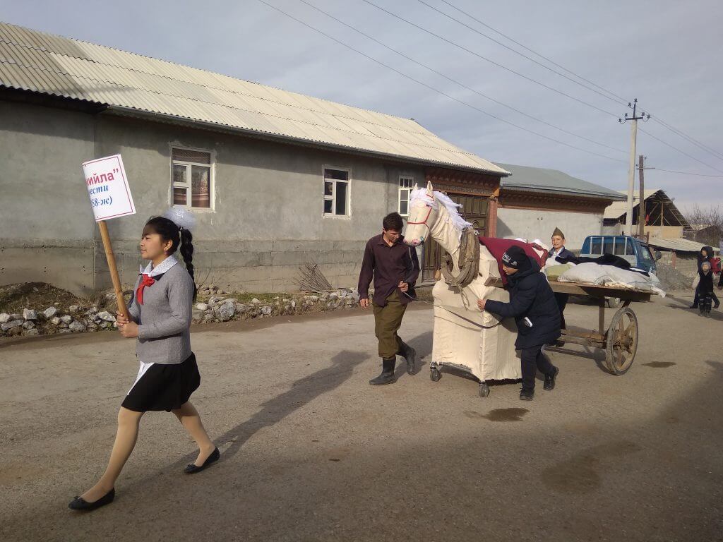 — Программа боюнча айылдын чоң көчөсүндө Ч.Айтматовдун чыгармаларындагы каармандардын жөө жүрүшүнө (парады) күбө болдук, билбейм идея кимдики, чындыгында абдан сонун болду. Жөө жүрүш аяктаган соң мектепте ачык асман алдында Ч.Айтматовдун чыгармаларын театралдаштырып креативдик деңгээлде көрсөтүштү.
