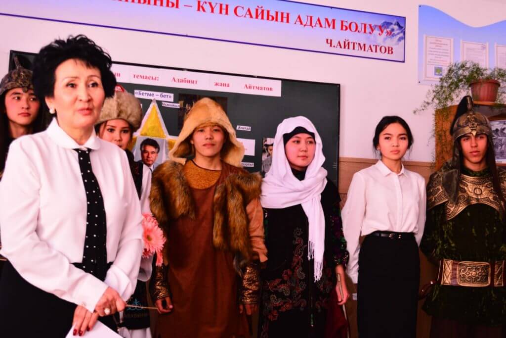 — Айтматовдун ар бир чыгармасын окуп жатканда анын каармандары менен аралашып жашайсың, окуяларга жан дүйнөң менен сүңгүп киресиң, бирде ыйлайсың, бирде күлөсүң, бирде кыжырың келет. Мына Айтматовдун өз окурмандарына тартуулаган чыгармаларынын көркөмдүк бийик деңгээли! Тилекке каршы, акыркы кездерде жаштар китеп окубай калды. Бирок, мааракеге байланыштуу көпчүлүгү китеп окуй баштаганы бизди, тарбиячыларды, кубандырат, — деп айтты мектеп жетекчиси.