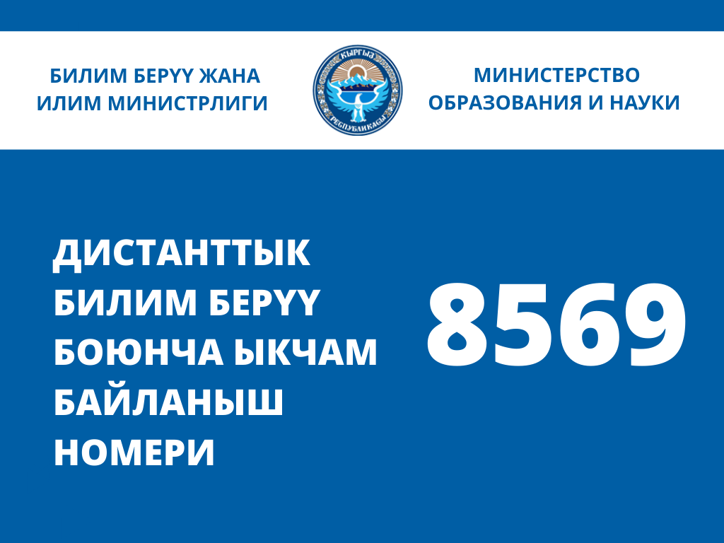 Техникалык себептерге байланыштуу, дистанттык окутуу боюнча жаралган суроолор үчүн ачылган 5858 ыкчам байланыш номери 8569га өзгөргөнүн кабарлайбыз.