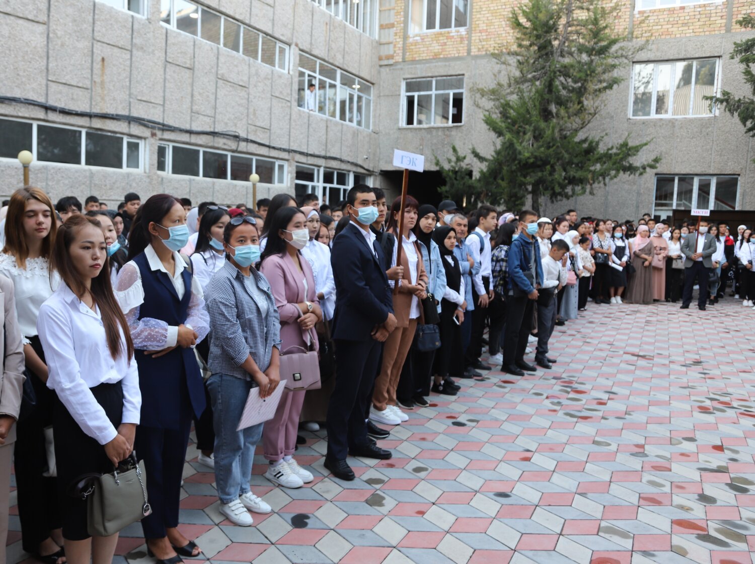 Иш-чара Кыргыз Республикасынын Гимни менен башталып, университеттин ректору Сатыбалды Өмүрзаков студенттерди жаңы окуу жылынын башталышы менен чын жүрөктөн куттуктап, аларга окууда албан-албан ийгиликтерге жетишүүлөрүн каалады. Ректор менен бирге бир катар жетекчилер да өз куттуктоолорун айтышты.