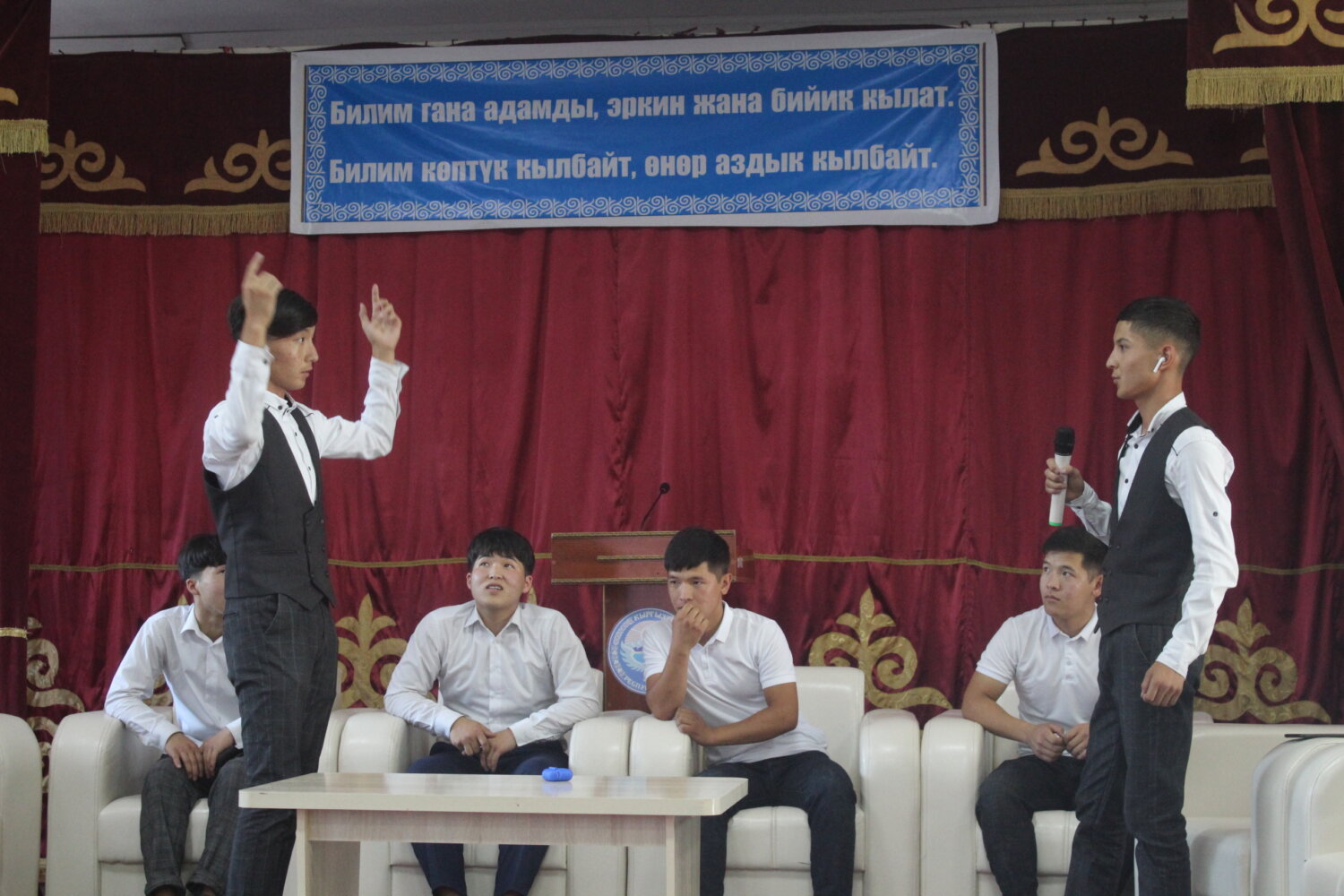 Эгиздер биргеликте окуп жаткан предметтери боюнча билимди текшерген суроолорго жооп берип, сүрөттөрдү чечмелеп, бийлеп, кошумча берилген тапшырмаларды аткарып, эгиздердеги мистикалык сырлар туурасында студенттерге айтып беришти.