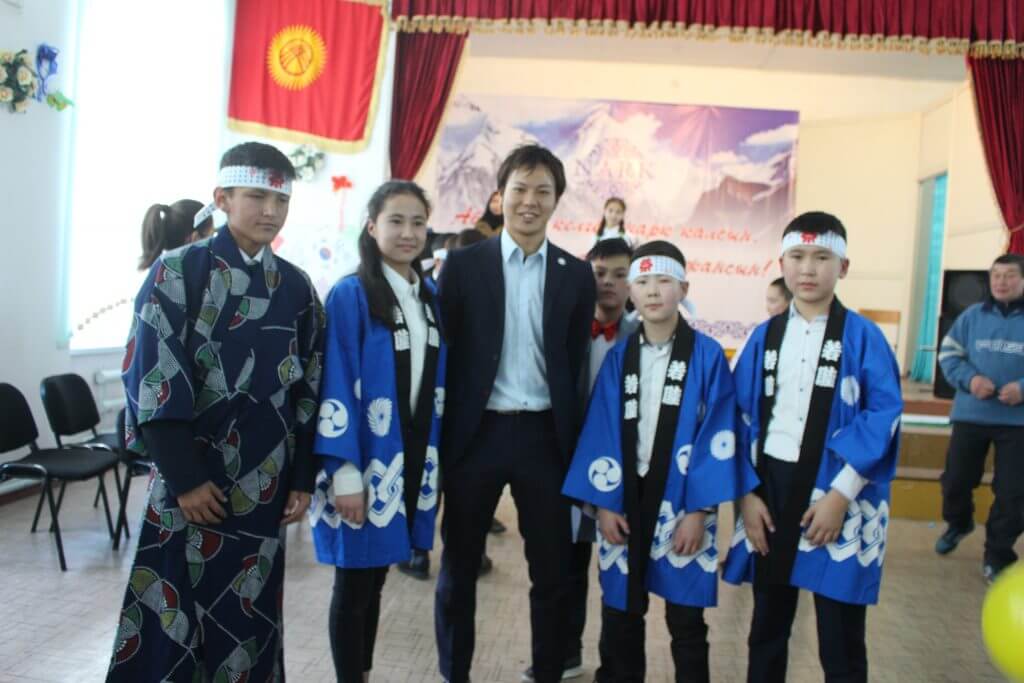 Жапон волонтеру Хироя Ямомато же кыргызча жөн гана Талант балдарга дене тарбия сабагын окутат. Дене тарбия сабагында кыргыздар үчүн жаңы оюн “дидибол” оюнун, жаңы көнүгүүлөрдү үйрөткөнгө көп күч жумшады. Бул жерде иштеген эки жыл ичинде кыргыз тилин жакшы өздөштүрүптүр. Анын бийге талантына кыргыз балдар менен “Кара жорго” бийин бийлегенде күбө болдук. Талант кыргыз бийинен тышкары тамашаны, анан кыргыз макалдарын да үйрөнгөнүн айтты. Ага айрыкча “Жакшы атка бир камчы, жаман атка миң камчы”, “Курсак тойсо да, көз тойбойт” деген макалдар жагат экен. Сапары карып жакында өз мекенине аттанар алдында турган Талант, кесипштештерине ажыраш аяк уюштуруу үчүн сойгонго атайын кой даярдап койдум,-деп күлдү.