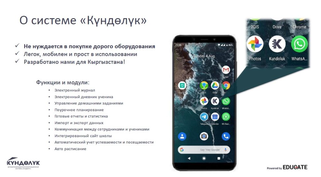 Кочкор районундагы Нинакан Жүндүбаева атындагы мектеп-гимназиясы карантин убагындагы аралыктан окутууну «Edugate» компаниясы иштеп чыккан “Күндөлүк” автоматтык электрондук системасынын негизинде окуу процессин уюштурууда.