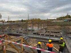 Курулуш компаниянын тарабынан курулуш аянтчасынын айланасына тосмо орнотулду, атайын техникалар тартылды. Учурда котлованга байланыштуу иштери аяктаган, бекем жана туруктуу фундамент куруу үчүн арматураны байлоо иштери аткарылды. Фундаментти куюу иштери кызуу жүрүүдө. Курулуш иштери коопсуздук жана айлана-чөйрөнү коргоо боюнча талаптарын аткаруу менен жүргүзүлүүдө.