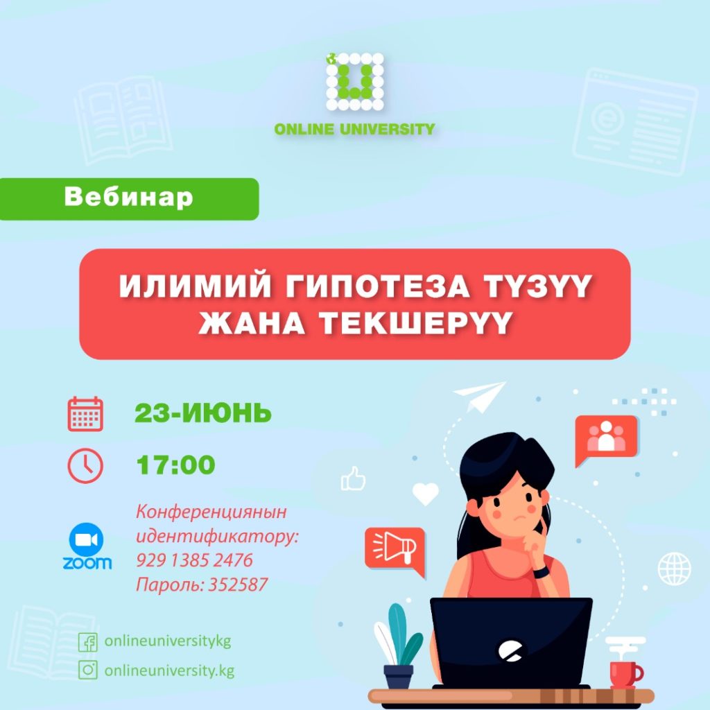 Эгерде анте албасаңыз, же аны үйрөнгүңүз келсе, бүгүнкү Онлайн Университетинин Илимий изилдөөлөр лабораториясы өткөрө турган «Илимий гипотеза түзүү жана текшерүү» аттуу вебинарына катышыңыз.
