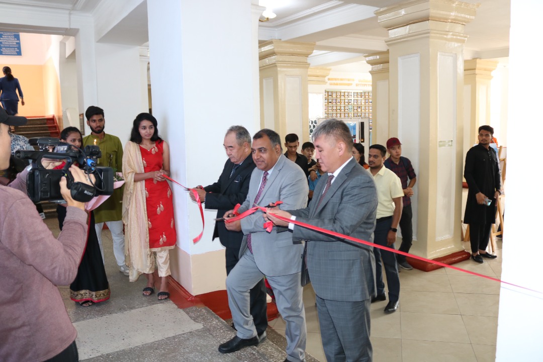 Окуу жайдын башкы имаратында уюштурулган “Индия Кыргыз Республикасында – Индиядагы жашоонун жана искусствонун көргөзмөсү” деген аталыштагы Индиянын тарыхы, маданияты, архитектурасына арналган сүрөт көргөзмөнүн ачылышына катышты.