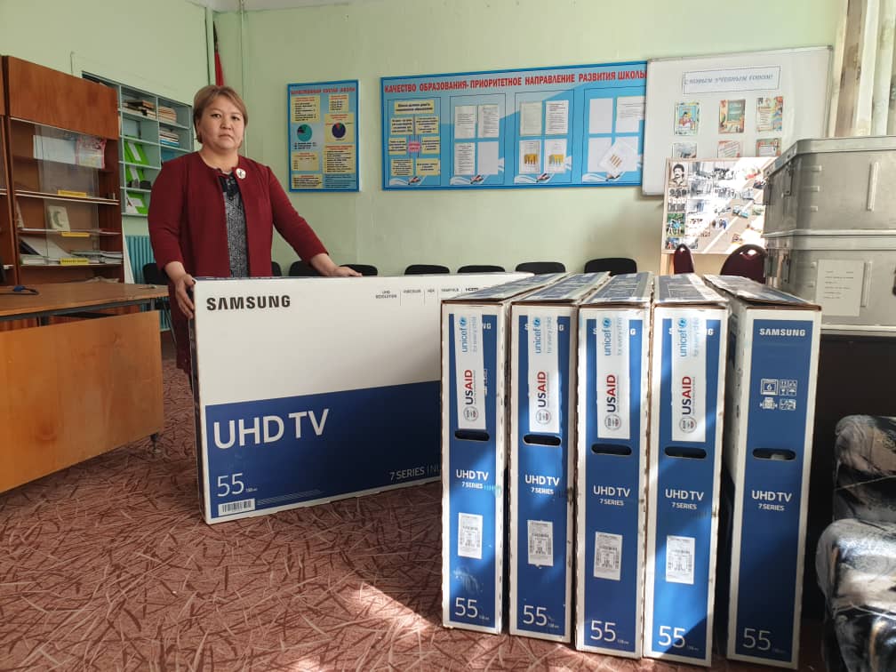 ЮНИСЕФтин Кыргызстандагы өкүлчүлүгү интернаттардагы балдарды аралыктан окутуу үчүн акыркы үлгүдөгү 8 телевизор жана 10 роутер алып берди.