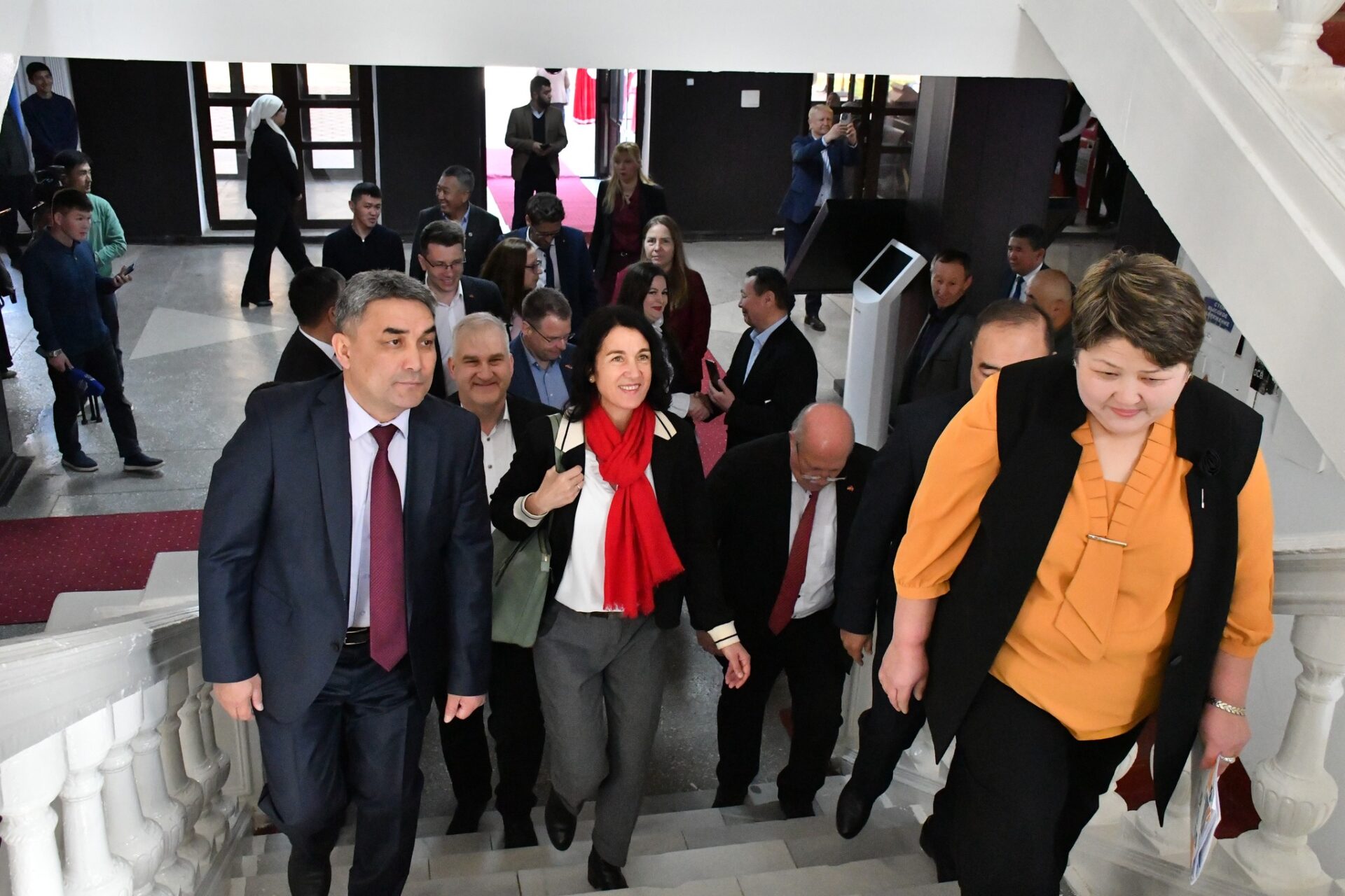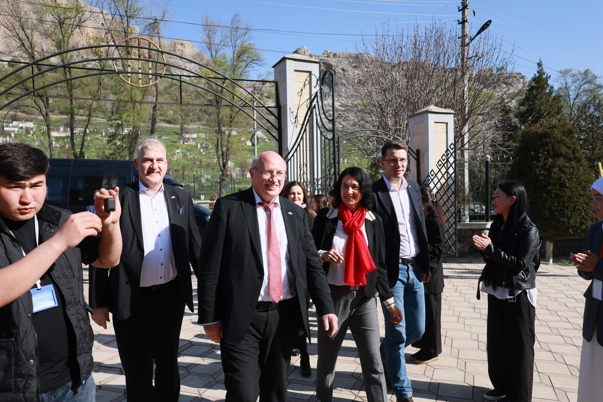 Кыргыз-Өзбек Эл аралык университетинде КР Президентинин Ош облусундагы ыйгарым укуктуу өкүлүнүн орун басары Талантбек Арстанкулов, Германиянын Эрфурт шаарындагы Соода-өнөр жай палатасынын жана FAV Service gGmbH компаниясынын өкүлдөрүнүн катышуусунда «Тюрингияда кыргызстандыктар үчүн билим берүү» аталышындагы форум өттү.