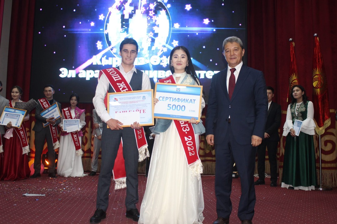 Сынакка жобого ылайык факультет, колледждерден бирден жуп катышып, өз өнөрлөрүн тартуулашты. Сынак саламдашуу, идеялдуу түгөйлөр, таланттуу кош жылдыз деген тапшырмаларды камтыган үч турдан орун алды. Калыстар тобунун курамын окуу жайдын ректору баштаган проректорлор жамааты түзүштү. Жыйынтыгында баш байгени тарых-филология факультетинин таланттуу студенттери багындырды. 1-орунду Кесиптик колледждин, 2-орунду юридика-бажы факультетинин, 3-орунду каржы-экономика факультетинен чыккан жуптар ээлешти.