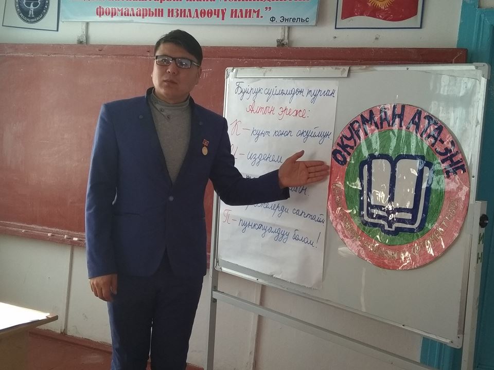 - Кандай иш-чара болбосун биздин мектеп биринчи орунду бербейт. Билим сапатын көтөрүү боюнча мугалимдердин документациясын ондодум. Ар бир мугалим менен жекече аңгемелештим, диагностика жүргүздүм, анкета алдым. Ар биринин сабактарына катыштым, көйгөйүн билдим. Оболу изилдеп чыгып, ошого жараша облустук, райондук семинарлардын темасына жараша мугалимдерди жөнөтүп турдум жана турам. Сабактарына кирип, ментор, байкоочу болдум. Көрүп, жардам бере алган насаатчы боло алдым. Талкалоочу эмес, калкалоочу болдум, — дейт Ж.Абдиназаров.