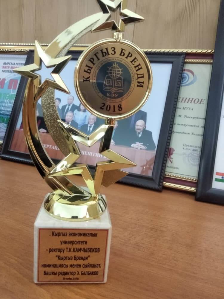 М.Рыскулбеков атындагы Кыргыз экономикалык универиситетинин ректору Камчыбеков Тѳлѳбек «Кыргыз Туусу» газетасынын «Кыргыз Бренди» сыйлыгы менен сыйланды.
