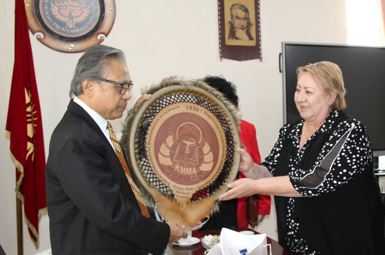 Жакында Кыргыз мамлекеттик медициналык академиясына Индонезиянын Кыргыз Республикасындагы Элчилигинин делегациясы: элчи Сунарё Картадинат, министрдин саясий, маалымат жана маданий иштер боюнча кеңешчиси Рожита Джамавар жана саясий иштер бөлүмүнүн кызматкери Розалина Тобинг келди. Делегацияны окуу жайдын ректору Индира Кудайбергенова кабыл алды.