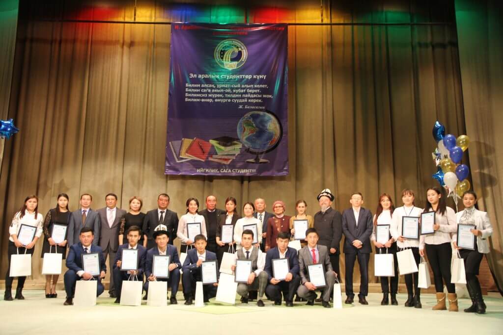 Салтанаттуу иш-чараны окуу жайдын ректору Төлөбек Абдырахманов ачып, адам баласынын жашоосундагы эң эсте кала турган жаштыктын, шаттыктын жана романтиканын мезгилин өткөрүп жаткан студенттерди майрамы менен чын-жүрөктөн куттуктады: «Студенттик күндөр ар бир адамдын бешенесине жазыла бербейт. Студент болуу кандай бакыт? Бул бакытты колдон чыгарбоо жана туура колдоно билүү зарыл. Коомдо, маданий тармакта жана эң башкысы билим жаатында ар дайым изденүү менен жүргүлө. Азыркы замандын талабына ылайык адам ар тараптуу болуп, алдыга өнүүгүсү абзел», – деп Президенттик стипендияга татыктуу болгон студенттерге жана ректордук стипендиянын ээлерине Ардак грамота жана акчалай сыйлыктарды тапшырды.