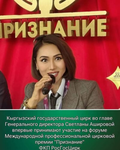Москва шаарындагы Чоң Москва циркинде «ПРИЗНАНИЕ» сыйлыгы тапшырылган эл аралык цирк форуму болуп өттү. Форумга атайын чакырылгандардын катарында Кыргыз Республикасынын мамлекеттик циркинин директору Асланайым Аширова да болду.
