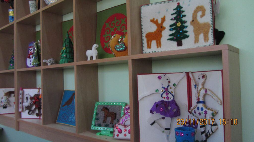 — Кийизден төөнөгүч, чач байлагыч, чач топтогуч, сөйкө, телефон же көз айнек кап, сумка, калпак, панно, кооз оймолорду жасаганды үйрөтөбүз. Кол өнөрчүлүк эстетикалык табитти өстүрүп, кунт коюу, ырааттуу иштөө көндүмдөрүн өнүктүрөт. Жасаган буюмдарын ала кетип, жакындарына тартууласа же башкаларга сатса болот.