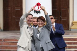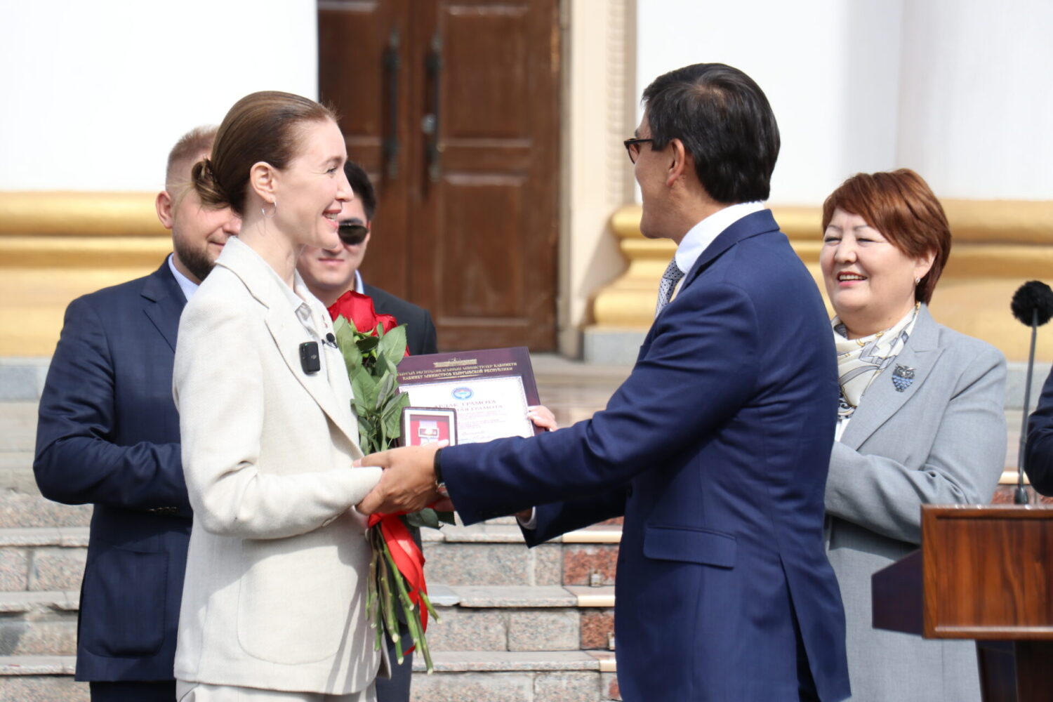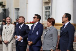 Т. Усубалиев атындагы аянтта Кыргыз Республикасынын Министрлер Кабинетинин төрагасынын орун басары Э. Байсаловдун, билим берүү министри Д. Кендирбаеванын, РФнын Мамдуманын депутаты, «Евразия» уюмунун төрагасы Аршинова Алена, Кыргыз Республикасынын Президентине караштуу Улуттук инвестициялык агенттиктин директору Иманов Талантбектин, Кыргыз Республикасынын Жогорку Кеңешинин Социалдык саясат боюнча комитетинин төрагасы Винера Раимбачаеванын, саясат таануучу, эксперт Молдокеева Алинанын жана “Евразия” эл аралык кызматташтыкты өнүктүрүү боюнча автономдуу коммерциялык эмес уюмунун өкүлдөрүнүн катышуусунда дагы 50 мектеп автобустарынын ачкычтары салтанаттуу түрдө тапшырылды.