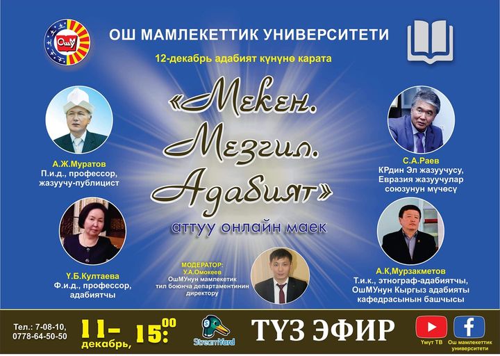 Ош мамлекеттик университетинде 12-декабрь — Адабият күнүнө карата «Мекен. Мезгил. Адабият» аттуу онлайн-маек уюштурулду.