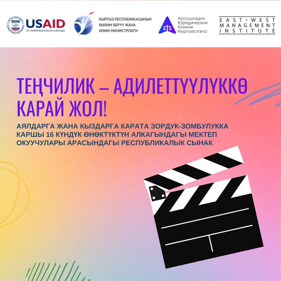 9-11-класстардын окуучуларын «Теңчилик – адилеттүүлүккө карай жол!» республикалык сынагына катышууга чакырабыз. Бул сынак Кыргызстандагы гендердик зомбулукту алдын алуу боюнча жаштардын жигердүүлүгүн арттырууга багытталган. Укуктук сынак Кыргызстандын Юридикалык клиникалар ассоциациясы тарабынан Кыргыз Республикасынын Билим берүү жана илим министрлиги менен биргеликте USAIDдин «Укук булагы» долбоорунун алкагында уюштурулуп жатат.