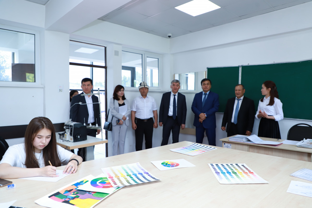 Министр колледждин жамааты менен жолугуп, студенттердин эмгектери жана ийгиликтери коюлган көргөзмө менен таанышып, пейжаз жанрындагы тарткан эмгегин министр сатып алды. Студенттердин иш- аракеттерине жогору баа берди. Андан сырткары дизайн адистигинде билим алган студенттери тарабынан даярдалган улуттук кийимдердин көргөзмөсүнө күбө болуп, колледжин материалдык техникалык базасы менен таанышты.