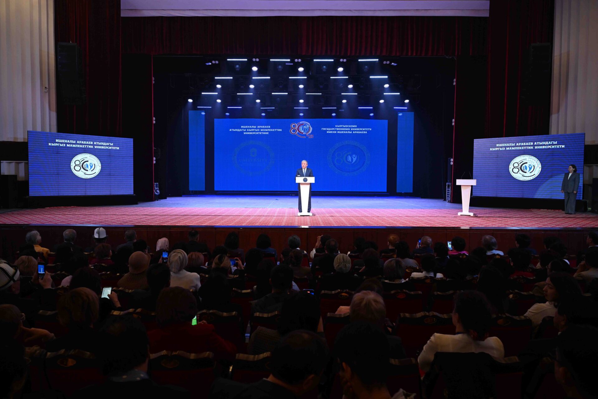 «Бүгүнкү күндө университет салттарды жана инновацияларды, маданий баалуулуктарды жана заманбап илимий жетишкендиктерди бириктирген билим берүү борборуна айланды. 80 жылдык юбилей – бул өткөнгө болгон урматтын гана символу эмес, ошондой эле жамааттын мамлекеттин, коомдун жана дүйнөлүк илимдин өнүгүшүнө кошкон зор салымын таануу», — деп белгиледи ал.